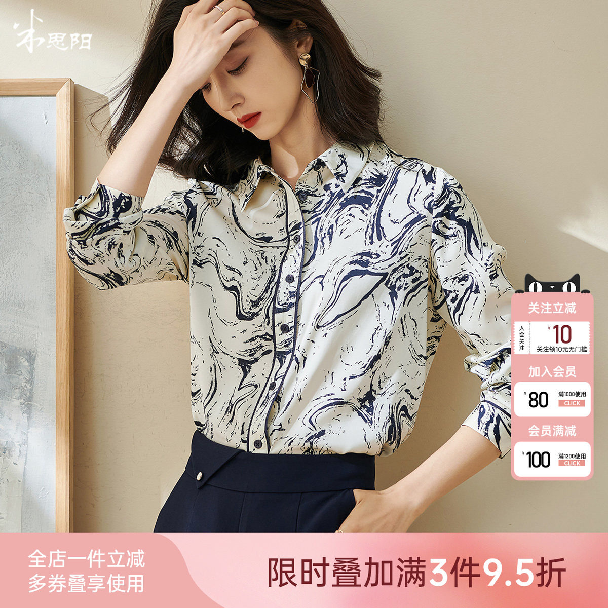 米思阳2026春季女士衬衣水墨画印花通勤职业上衣新款长袖衬衫0869
