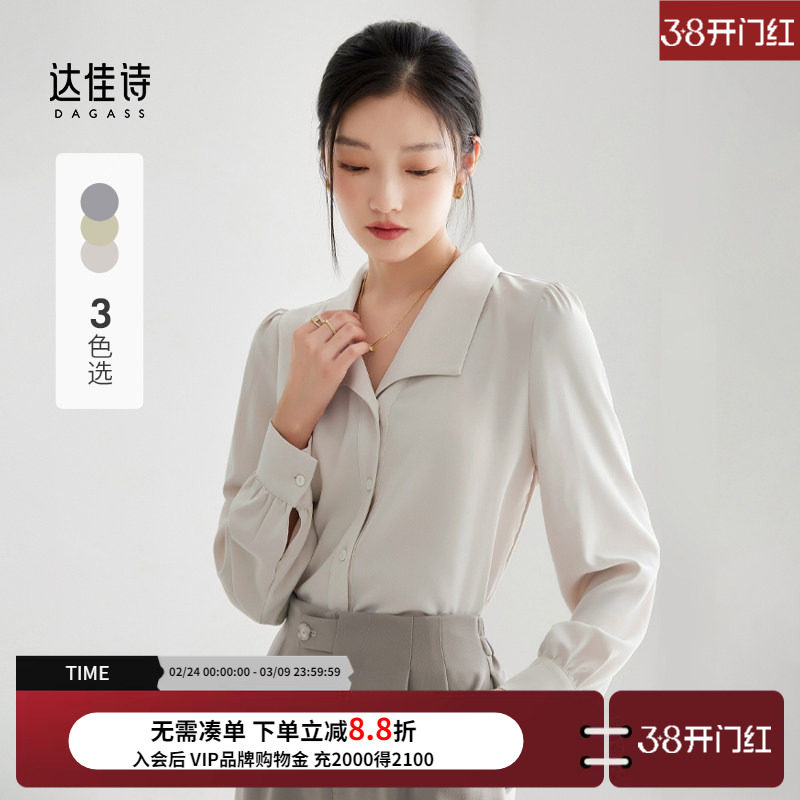 达佳诗缎面衬衫女春夏设计感小众燕子领轻熟法式上衣通勤女士衬衣