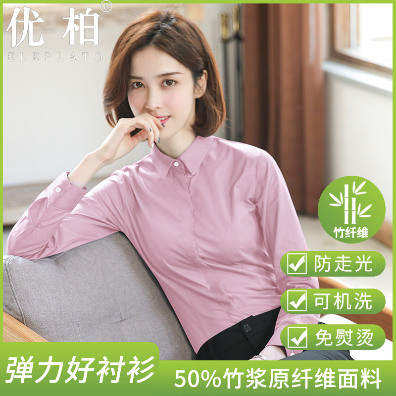优柏粉色衬衫女长袖新款职业气质正装工作服修身通勤上衣女士衬衣