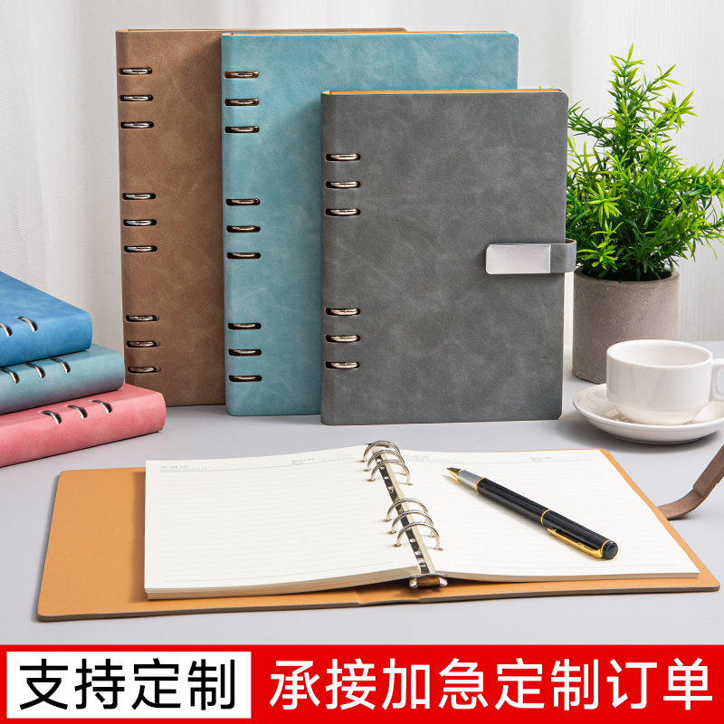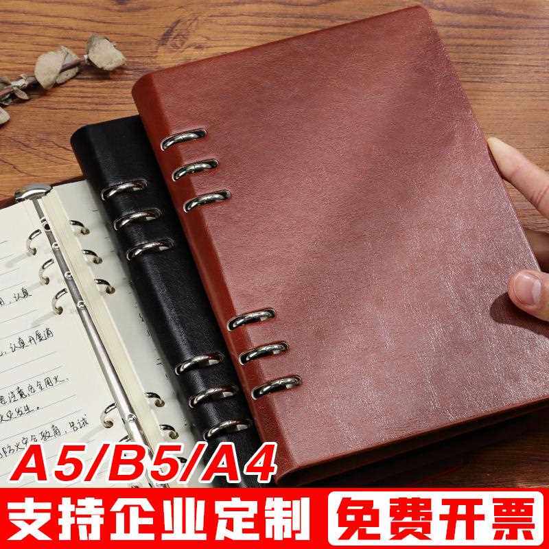 六孔/九孔四孔活页笔记本定制a5办公商务复古可拆卸扣环B5大号9孔皮面加厚活页替芯记事本定做工作会议记录本