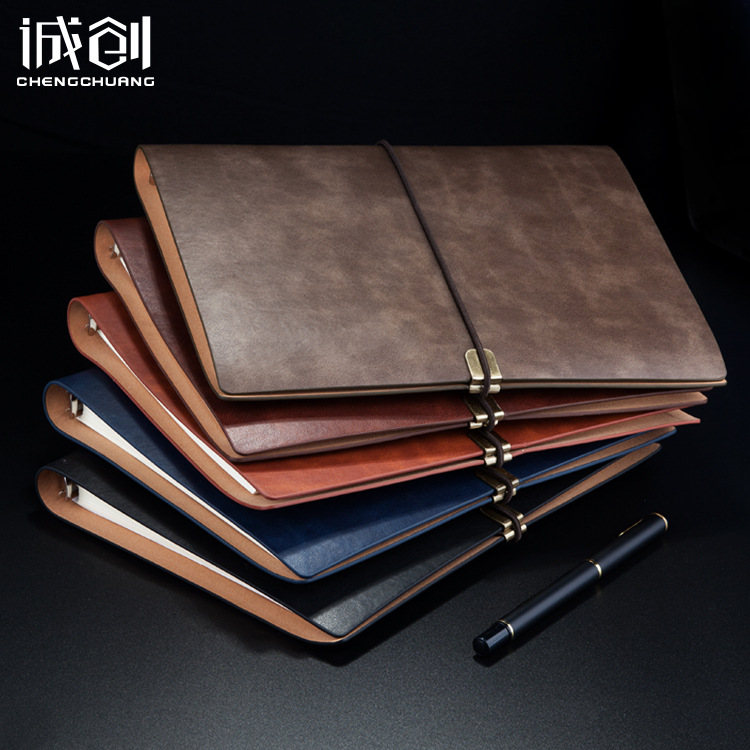 A5商务活页笔记本定制B5会议记录本学生加厚日记本复古手账本皮面