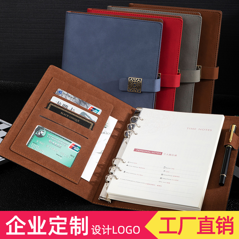 A5活页笔记本定制封面搭扣记事本可拆卸环扣皮面b5本子皮面简约订做办公会议记录本礼盒套装活页本定制logo
