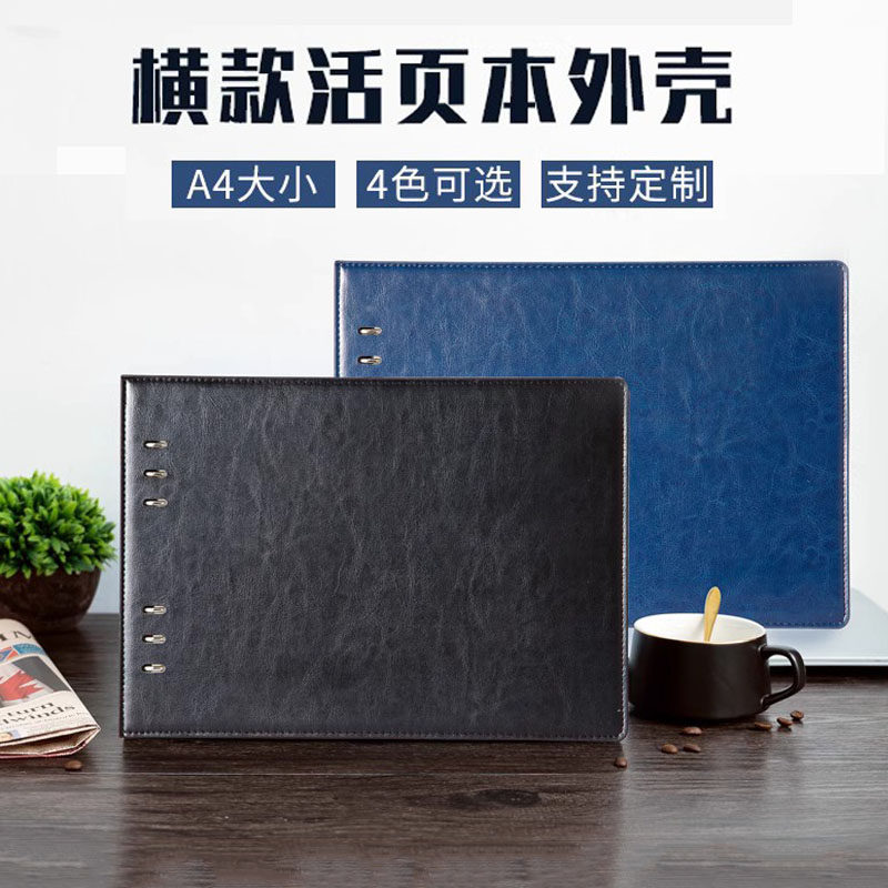 横版商务A4活页笔记本定制6孔活页夹外壳可拆卸加厚活页本高档仿牛皮记录本计划本16K手账记事本定做LOGO刻字