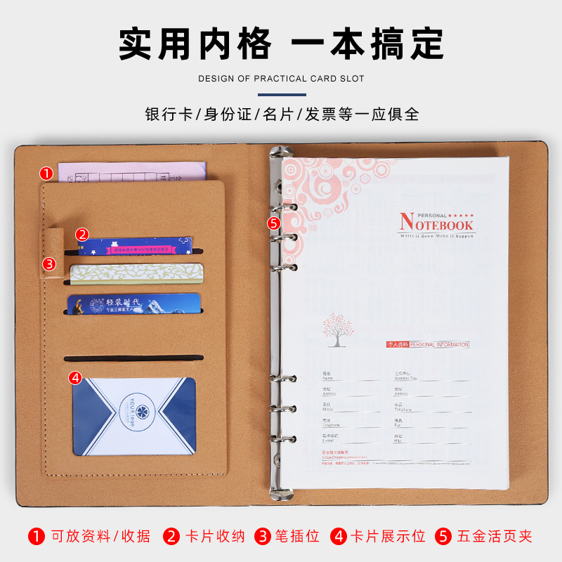 A5活页本可拆卸B5记事本A4商务活页笔记本定制可印logo 皮面皮革活页夹六孔9孔4孔 办公用品内页订做印刷刻字