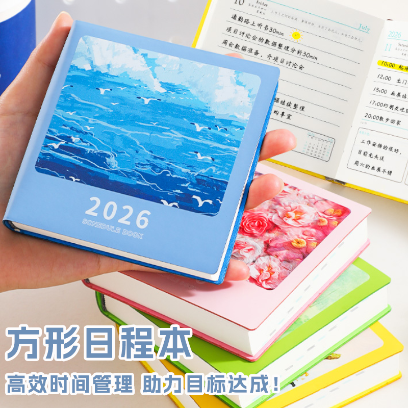 2026年日程本便携记事手账本工作备忘录自律打卡迷你方形日程本高颜值女孩随身小本口袋本每日计划本笔记本子