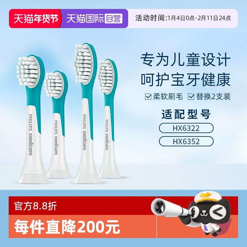 【自营】Philips/飞利浦儿童电动牙刷头迷你型2支装适用HX6322