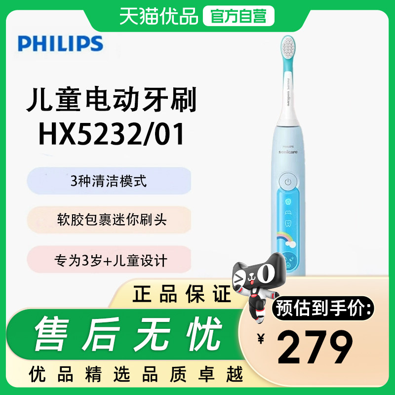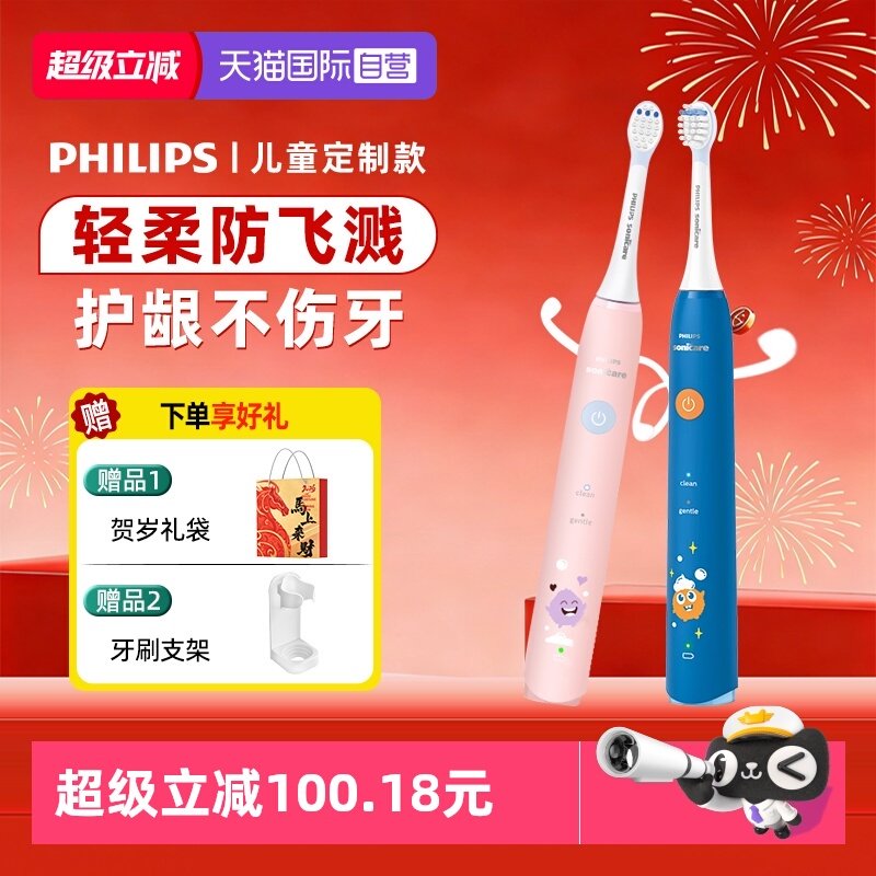 【新年礼物】飞利浦儿童声波电动牙刷HX5232小飞刷官方正品旗舰店