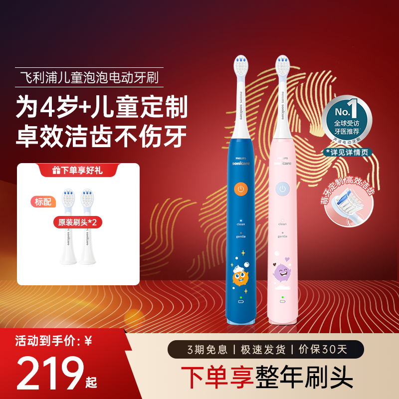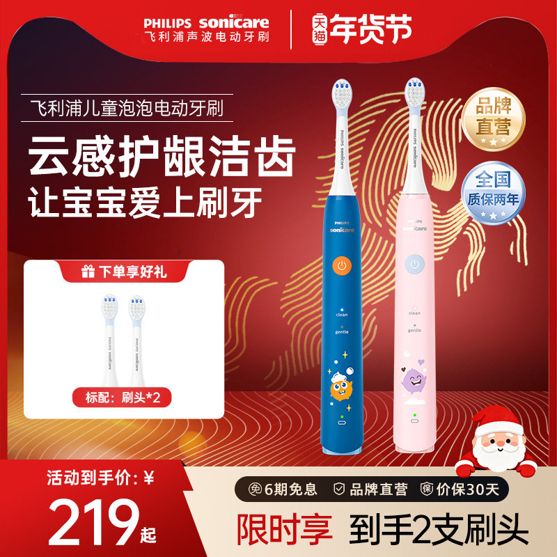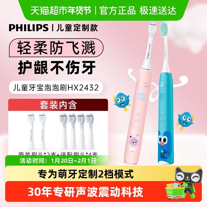 【新年礼物】飞利浦儿童电动牙刷hx2432泡泡刷软毛官方正品旗舰店