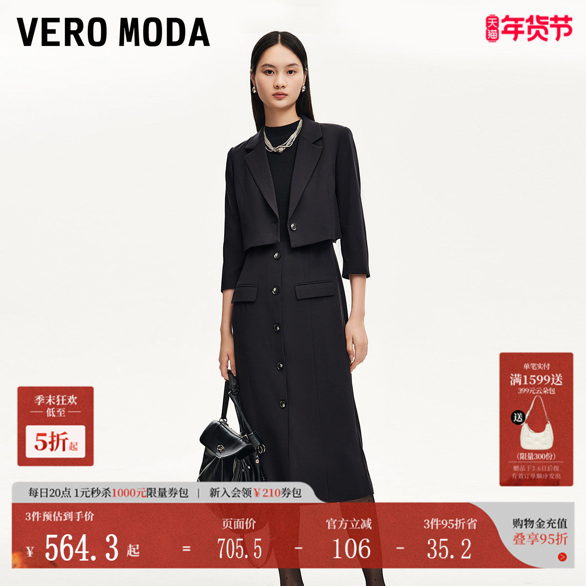 Vero Moda连衣裙秋冬套装针织拼接小黑裙西装外套32447C014