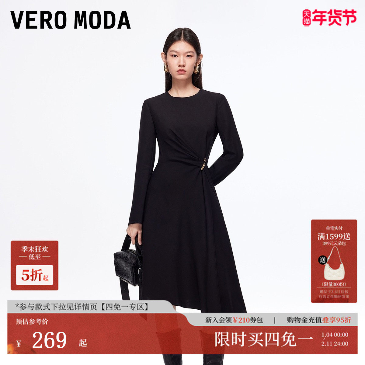 Vero Moda连衣裙2025秋冬新款金属装饰收腰显瘦不规则裙摆小黑裙