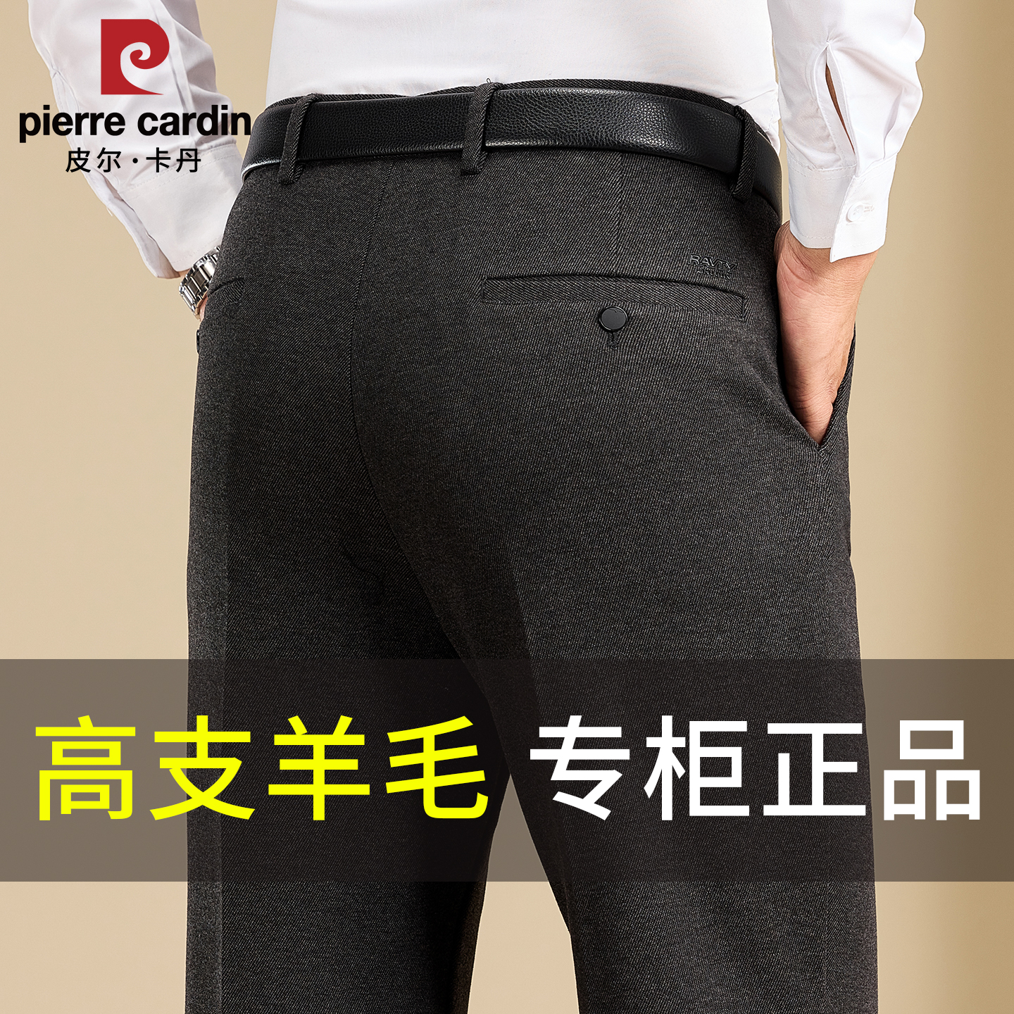 皮尔卡丹秋冬款男士休闲裤中老年羊毛西装裤宽松爸爸裤子冬季男裤
