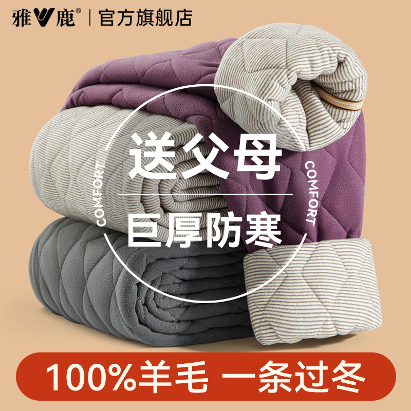雅鹿100%羊毛保暖裤女加绒加厚冬季中老年人秋裤男款绒裤东北棉裤