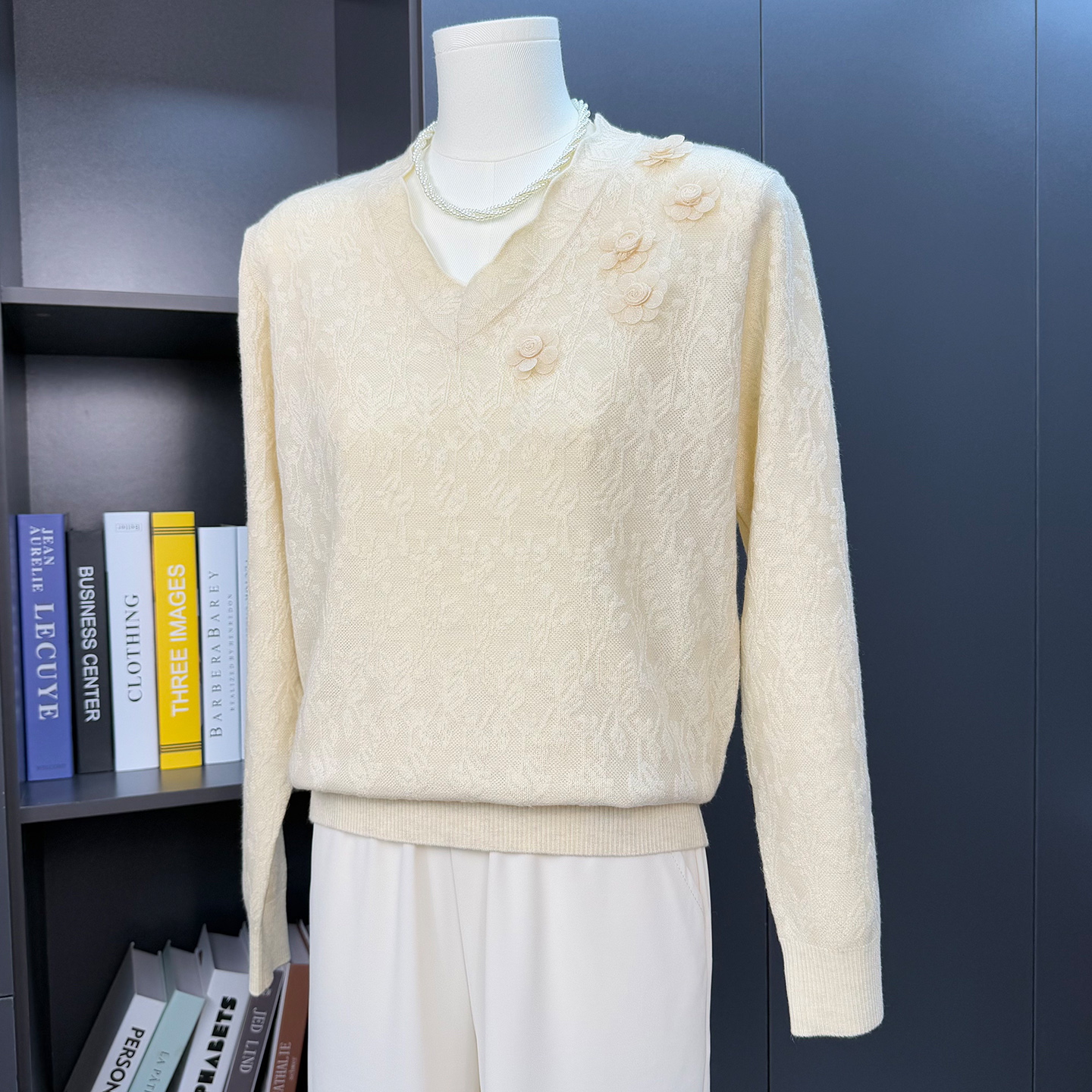 中老年女装妈妈装秋季针织衫女上衣小衫羊毛衫洋气长袖打底衫薄款