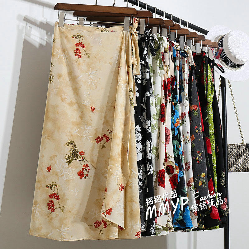 小清新雪纺碎花一片式系带半身裙2025春夏新款显瘦沙滩裙裹裙长裙