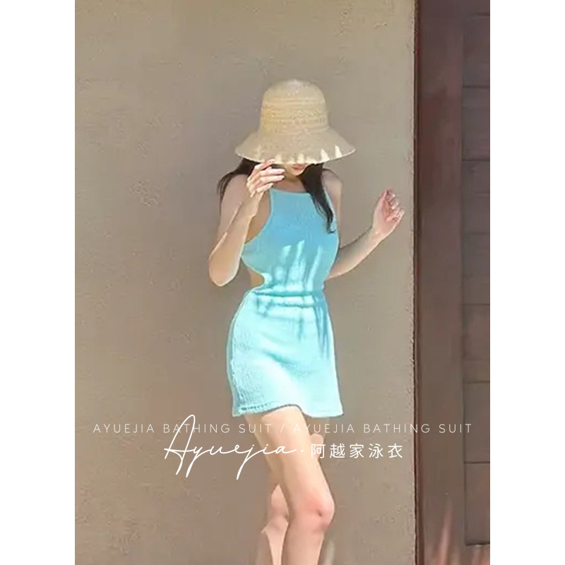 纯欲风露背绑带简约裙式连体泳衣女2024新款遮肚子显瘦沙滩裙泳装