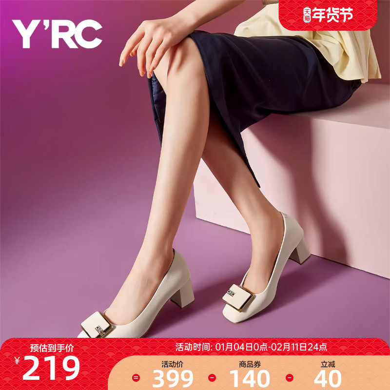 RV单鞋女2025新款细高跟鞋秋冬方头方扣显瘦舒适浅口真皮性感优雅