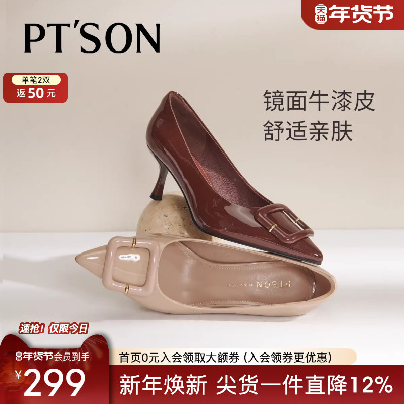 富贵雨新款漆皮方扣高跟鞋女细跟浅口单鞋气质名媛法式小众设计感