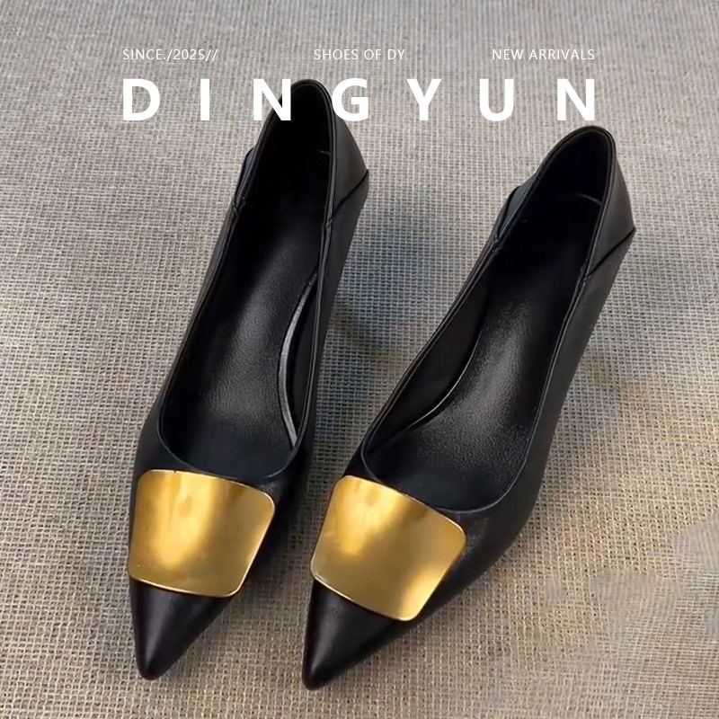 【丁允】气质复古尖头金属方扣高跟鞋2026早春新款通勤百搭浅口鞋
