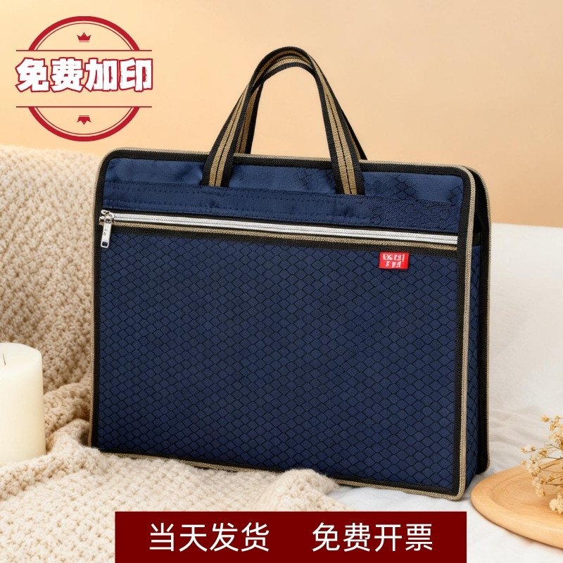 A4定制手提文件包拉链式大容量防水帆布加厚竖款休闲包男士女士牛津布公文袋商务办公会议学生上课培训补习袋