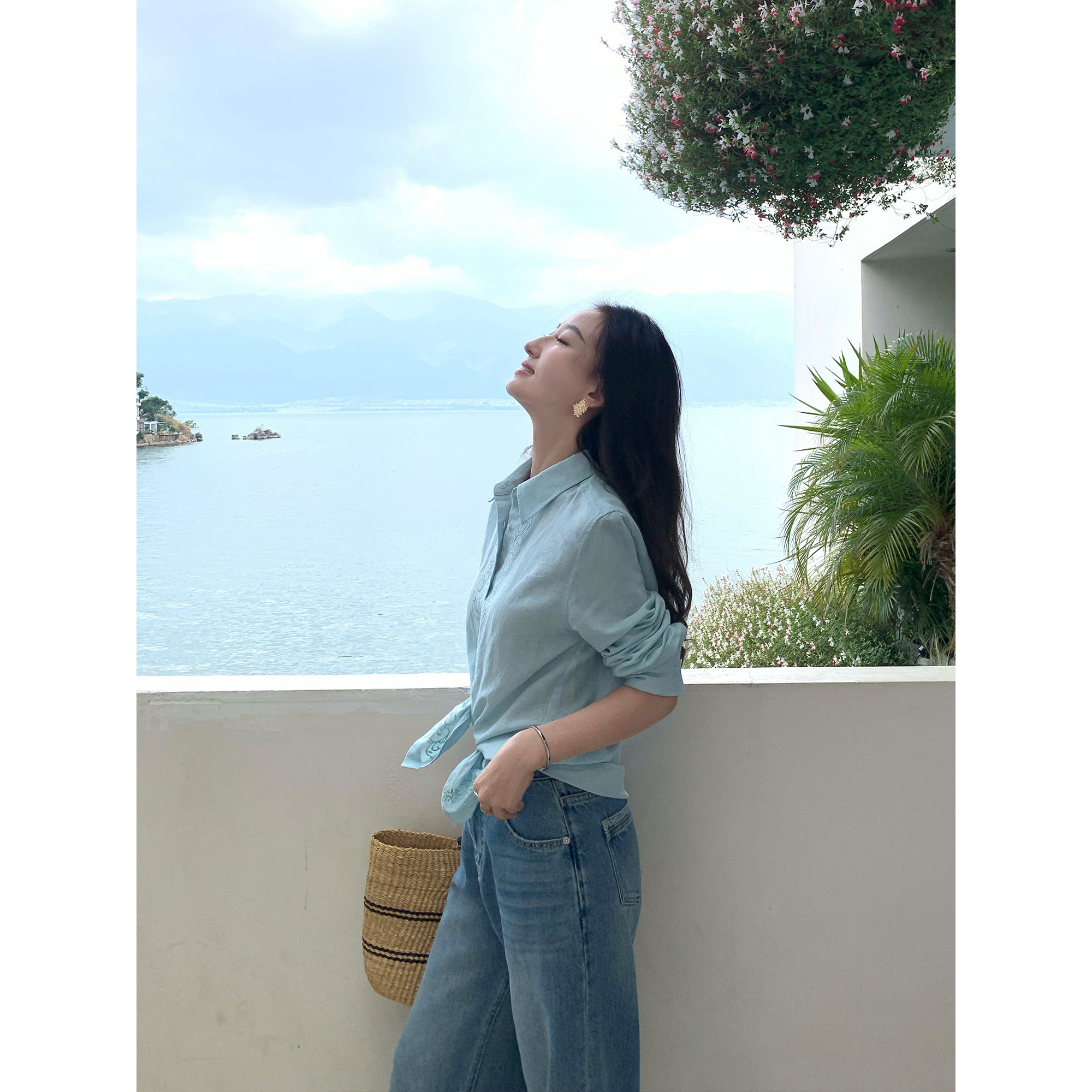 - 白衬衫女 长袖 宽松 棉麻