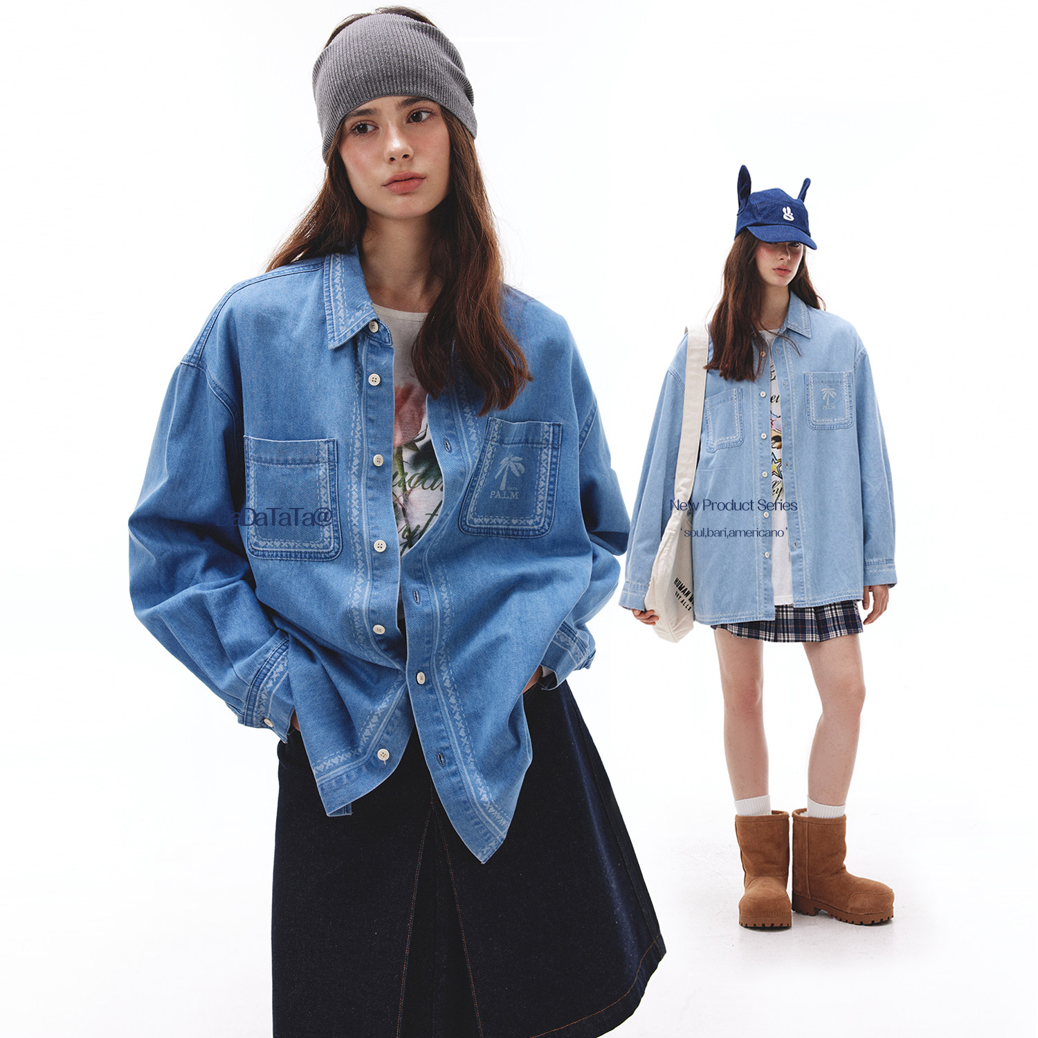 - 牛仔衬衫女 学院风