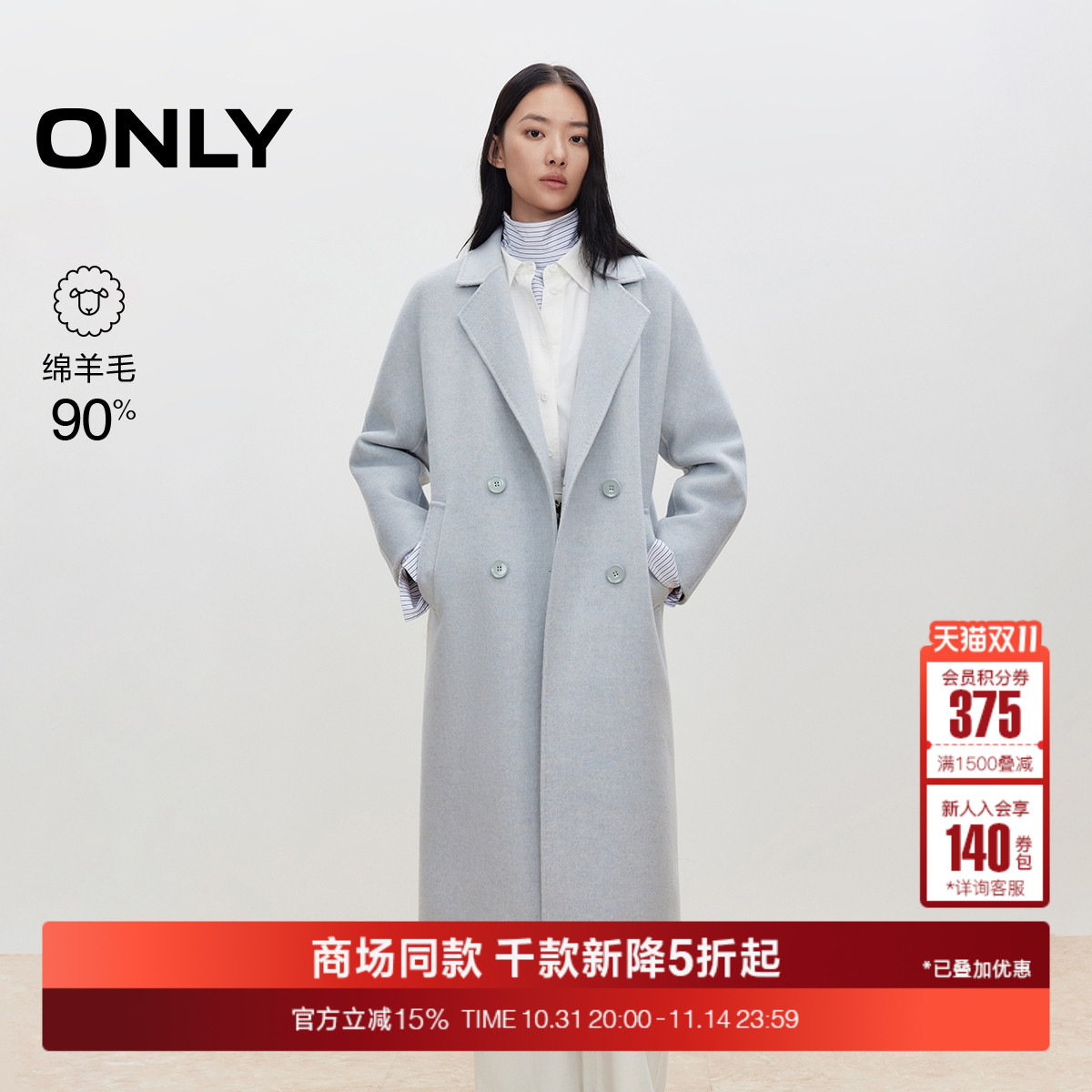ONLY冬季双面呢纯绵羊毛长款单排扣毛呢大衣女|12436U002