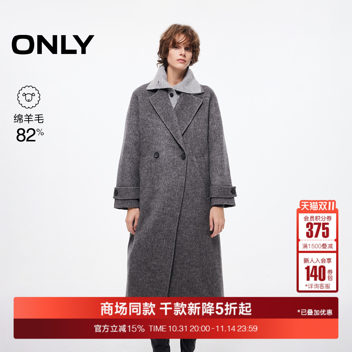ONLY2025冬季新款休闲通勤100%绵羊毛双面呢直身长款毛呢大衣女