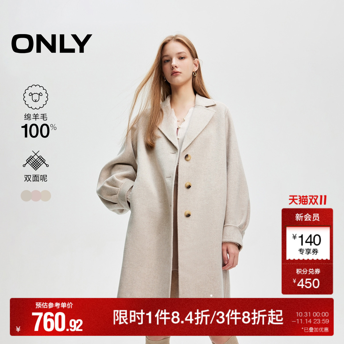 ONLY冬季双面呢100%绵羊毛中长款毛呢大衣女|12436U003