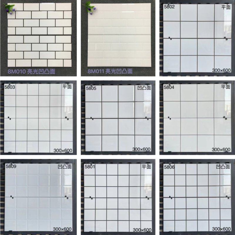 北欧瓷砖卫生间厨房公租房墙砖300×600亮光面包砖黑白格子砖