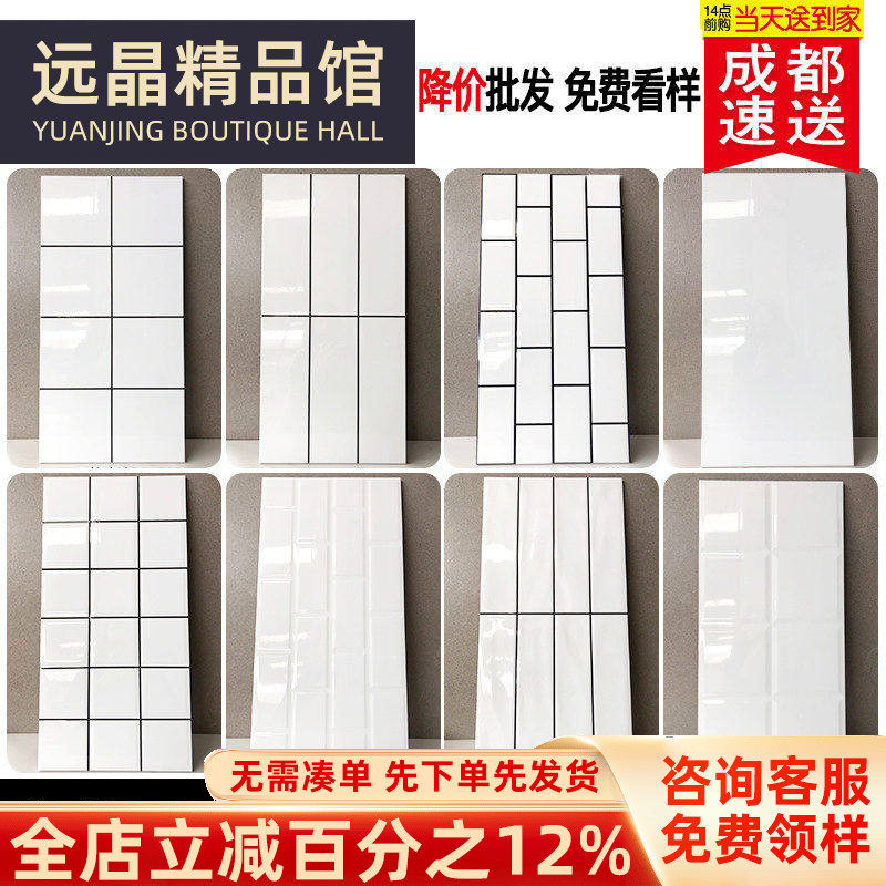 远晶 300x600北欧白色格子砖厨房卫生间浴室墙砖纯色瓷砖小白砖