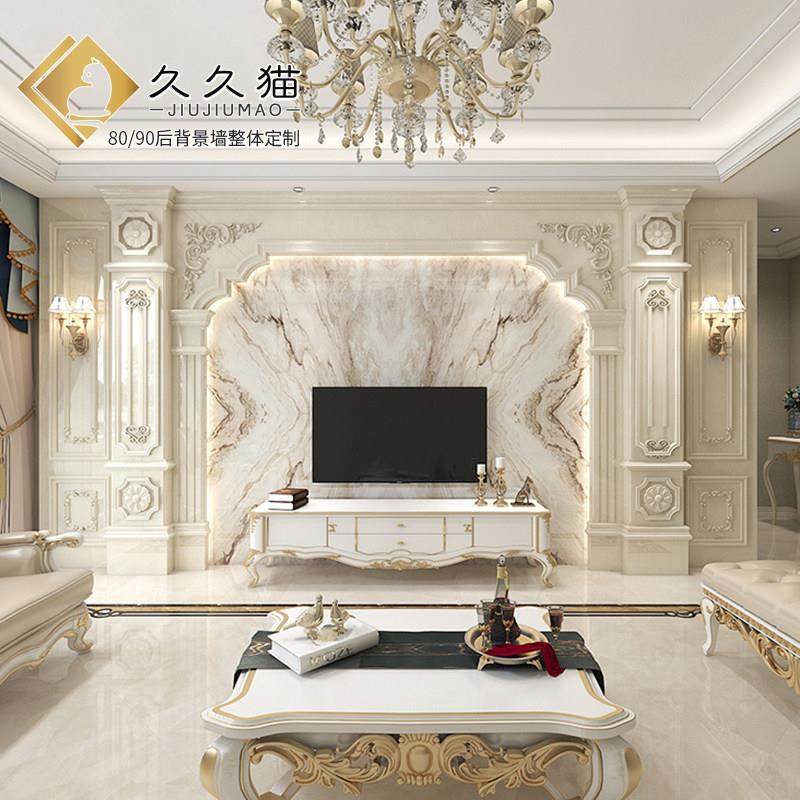 北欧瓷砖背景墙别墅欧式复式护墙板轻奢岩板电视墙罗马柱大理石材