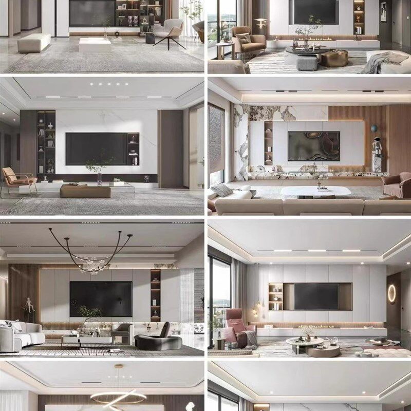 2024新款岩板悬空电视背景墙瓷砖客厅装饰现代简约大理石影视大气