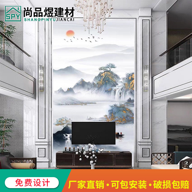 2025款瓷砖电视背景墙岩板客厅新中式简约微晶石大理石影视墙壁画