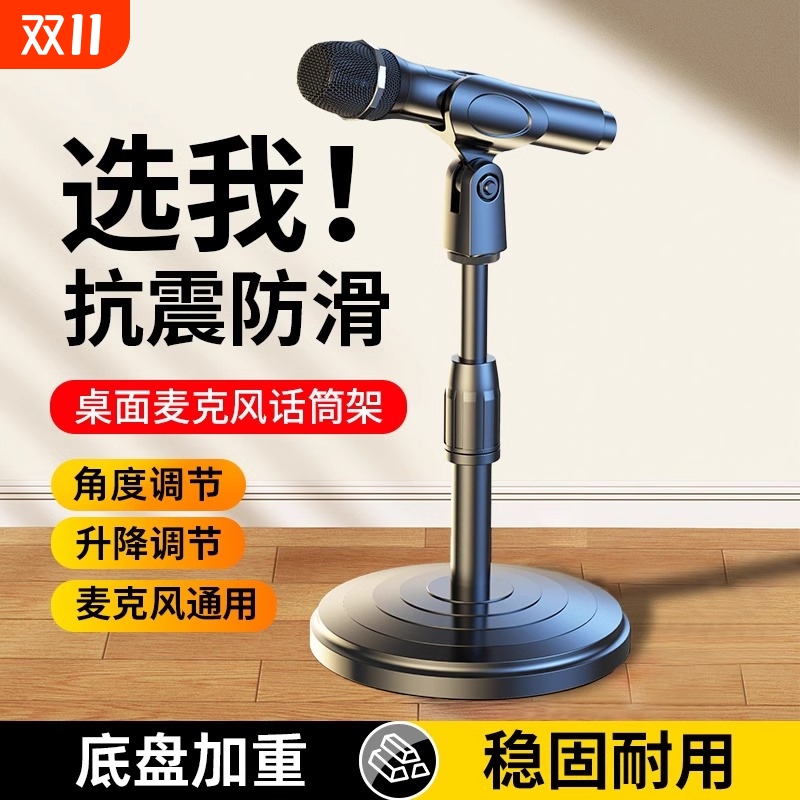手机直播支架圆盘桌面麦克风唱歌话筒支架无线麦架子加重座座升降