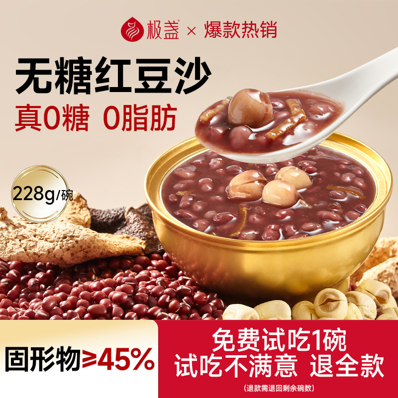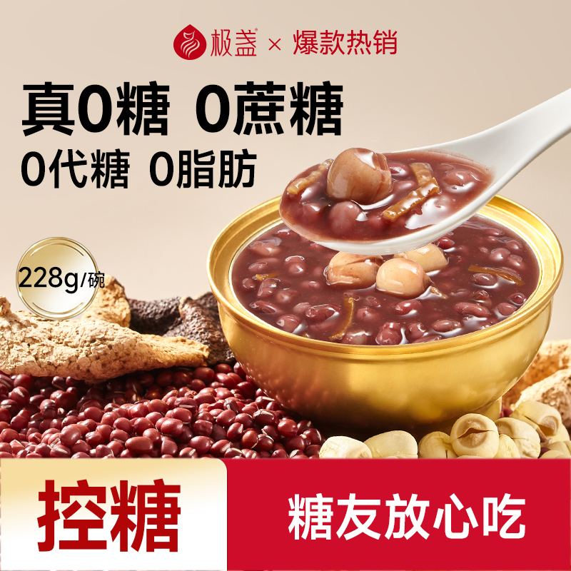 极盏0脂肪无糖陈皮莲子红豆沙八宝粥速食免煮代早餐粥即食228g/碗