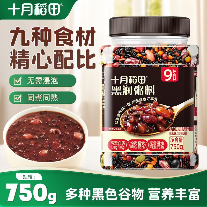 十月稻田黑润粥料750g五谷杂粮粥黑豆花生黑米红米芸豆扁豆早餐粥