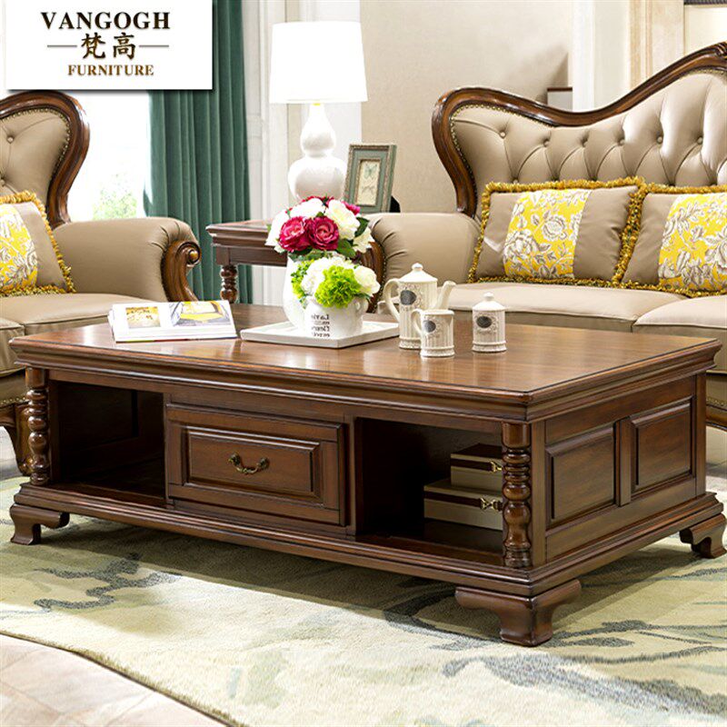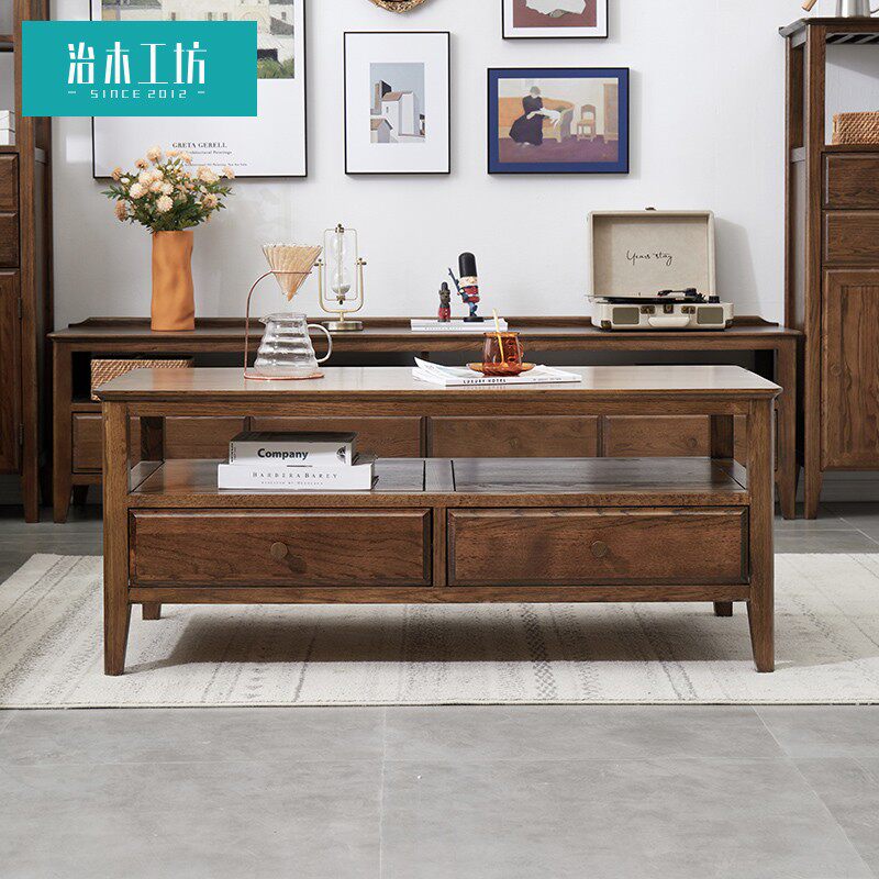 美式乡村纯全实木茶几电视柜组合轻奢简约复古欧式客厅家用茶水桌