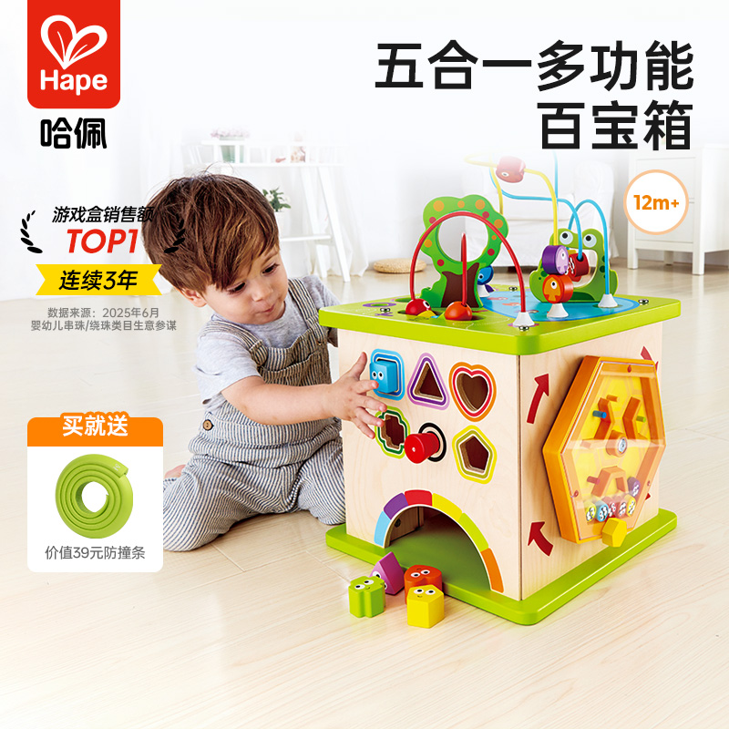 Hape森林动物游戏盒六面体儿童串珠绕珠滚球百宝箱益智玩具早教