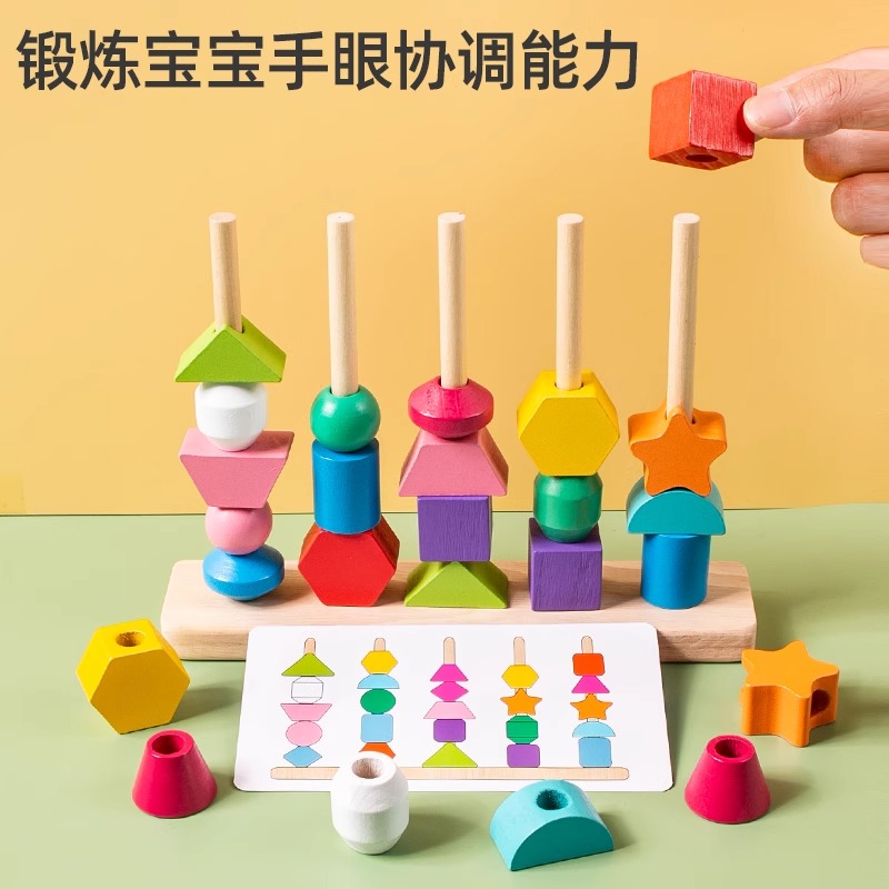 蒙氏早教益智宝宝积木串珠绕珠儿童玩具专注力训练一2-3岁半以上