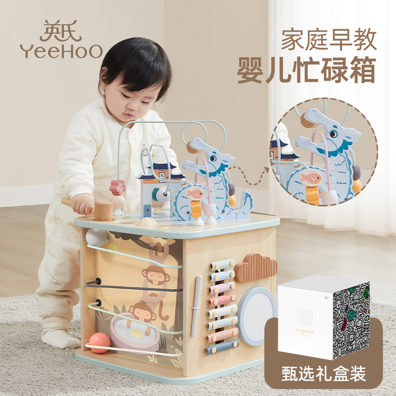 英氏串珠绕珠六面体婴儿忙碌箱宝宝蒙氏早教益智玩具蒙特梭利教具