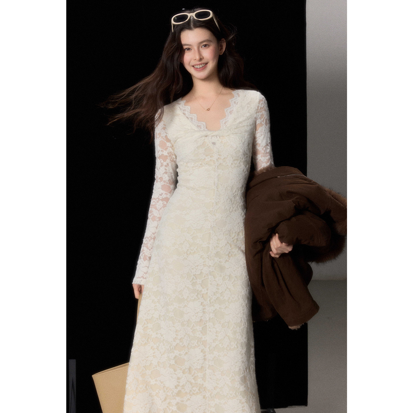 - 品牌蕾丝连衣裙