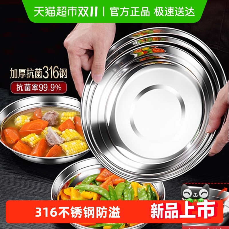 食品级加厚316不锈钢盘子圆盘家用圆形托盘浅盘蒸盘铁菜盘304碟子