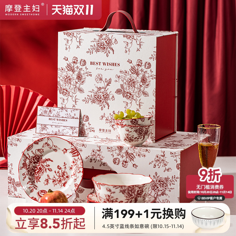 摩登主妇餐具新婚结婚订婚礼物送新人闺蜜乔迁新居礼盒碟碗盘套装