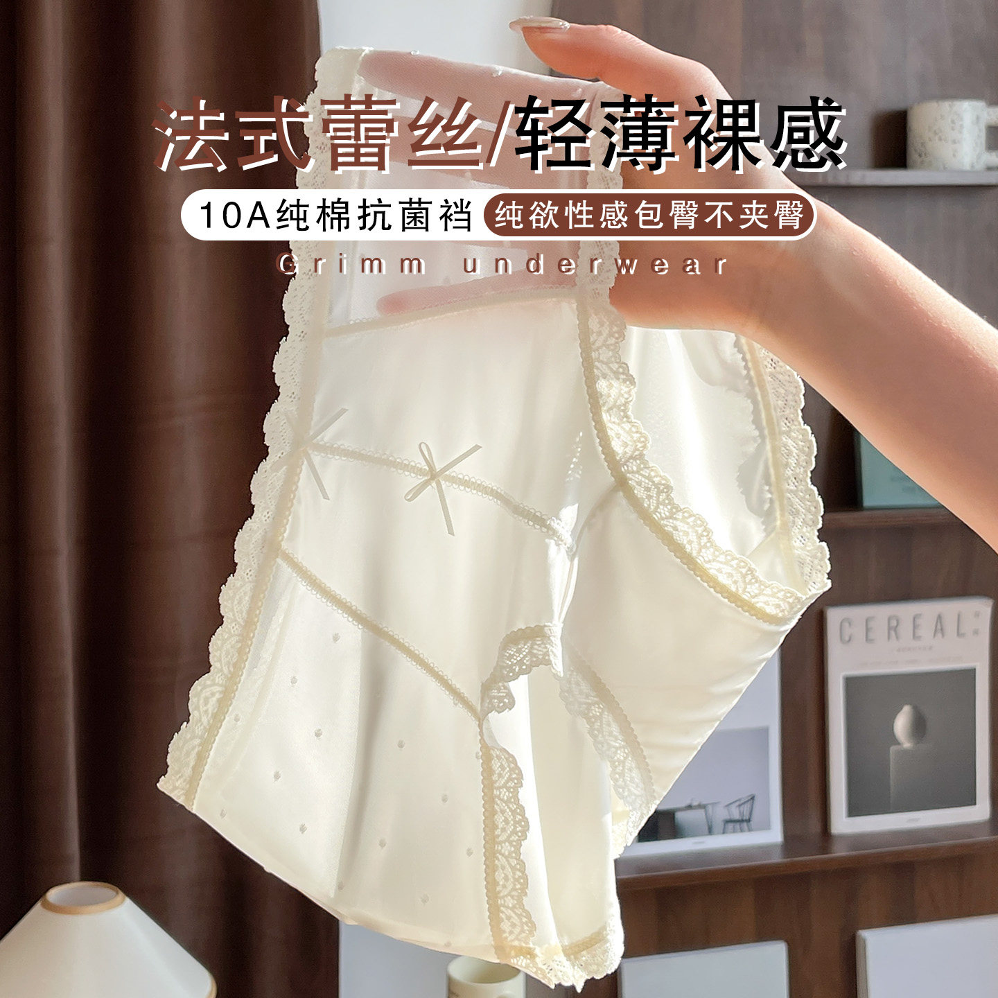 「CG」性感蕾丝女士内裤女生2026新款纯欲风细带不夹臀棉裆三角裤