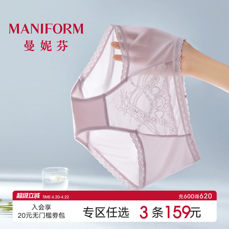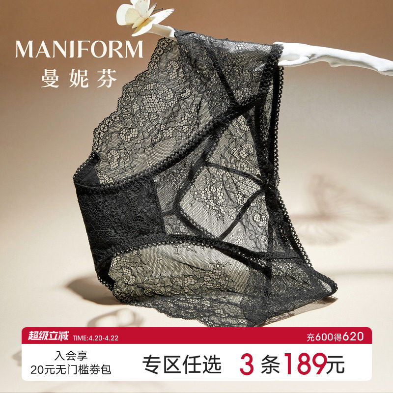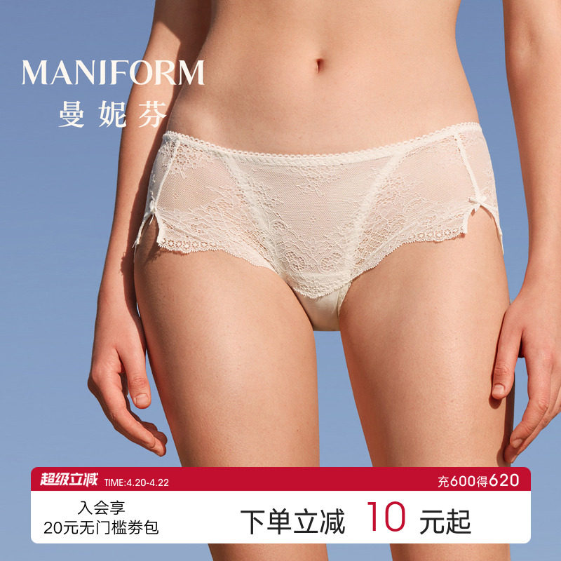 曼妮芬性感蕾丝女士内裤高颜值无痕中腰低角裤舒适高弹纯棉裆短裤