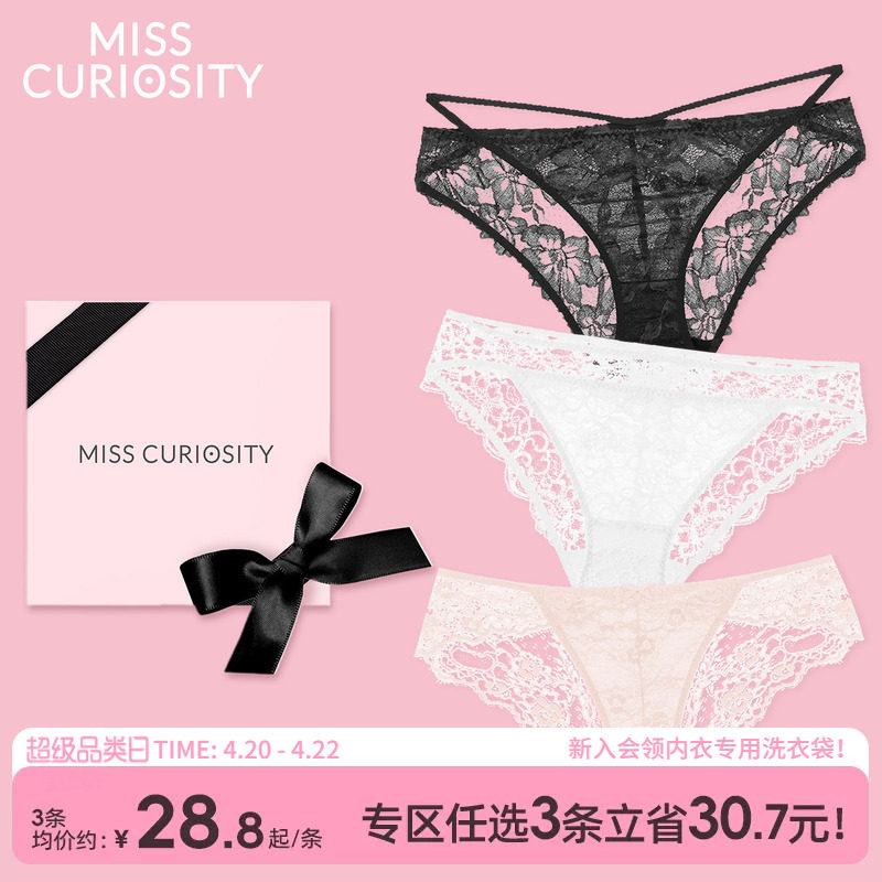 3条98元好奇蜜斯蕾丝女法式性感纯欲低腰三角内裤纯棉抗菌裆绑带