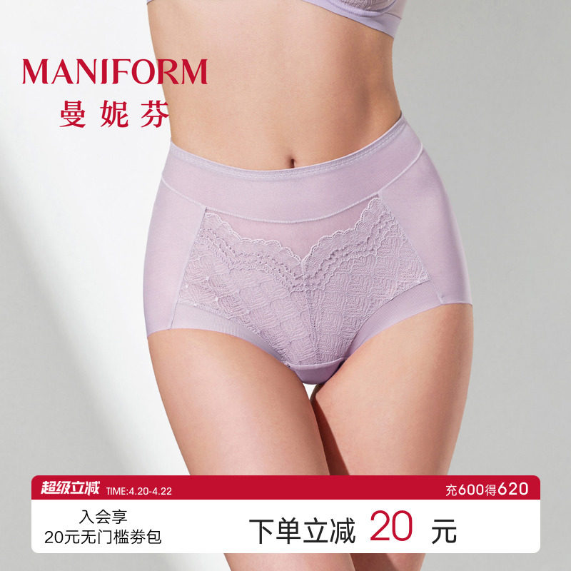 曼妮芬舒适高腰大码收腹内裤红色低角裤女士性感蕾丝全棉底裆底裤