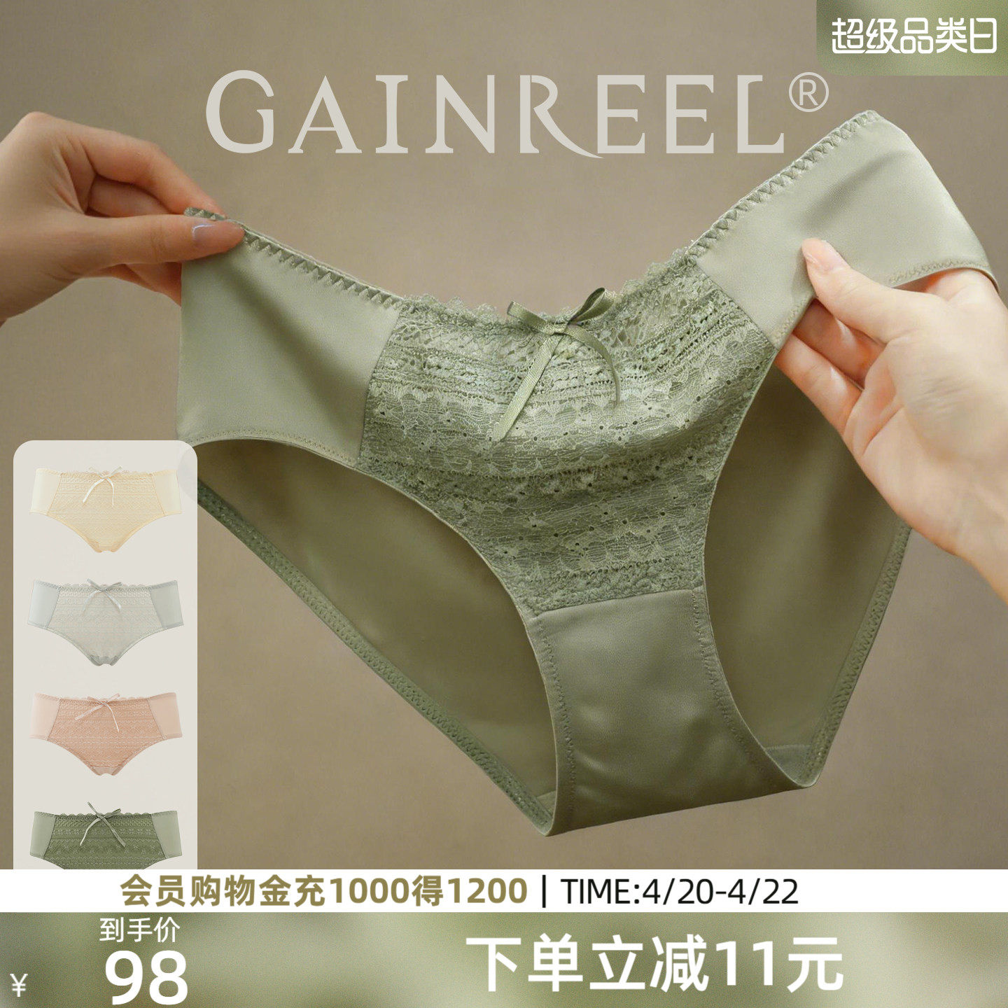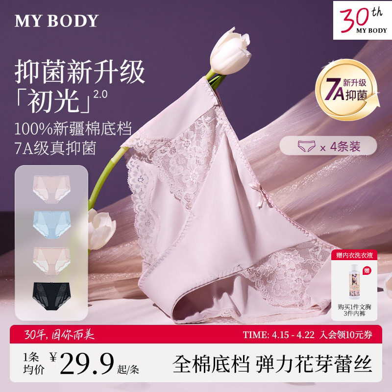 4条装MYBODY商场同款内裤女7A级抗菌纯棉底裆性感蕾丝中腰三角裤
