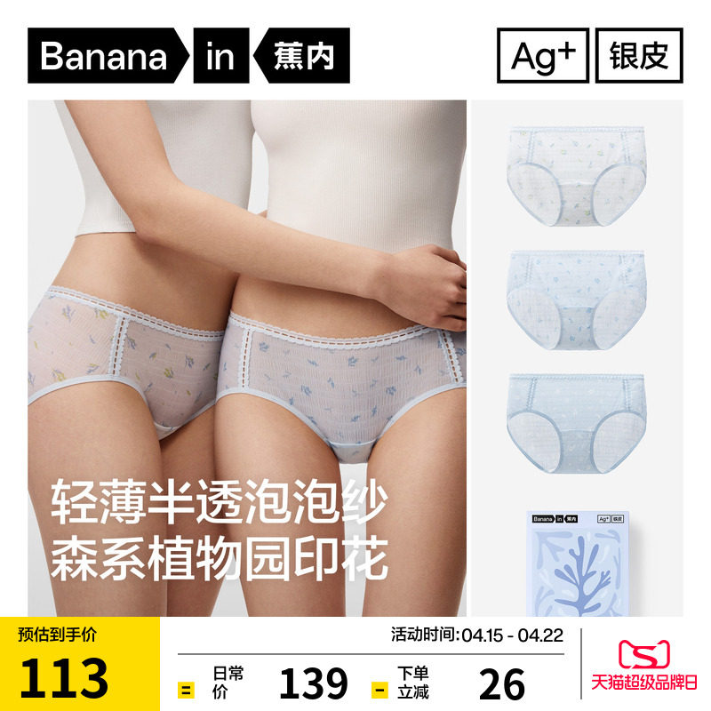 3件|蕉内银皮311A女士内裤莫代尔舒适性感纯棉透气裆抗菌三角裤女