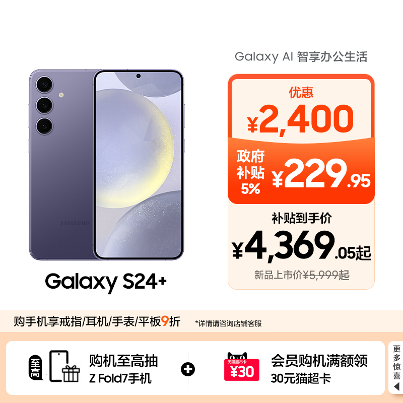 【国家补贴500元】Samsung/三星 Galaxy S24+旗舰超视觉夜拍大屏AI智能5G拍照游戏手机